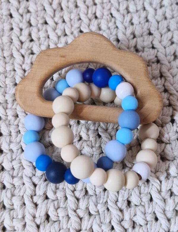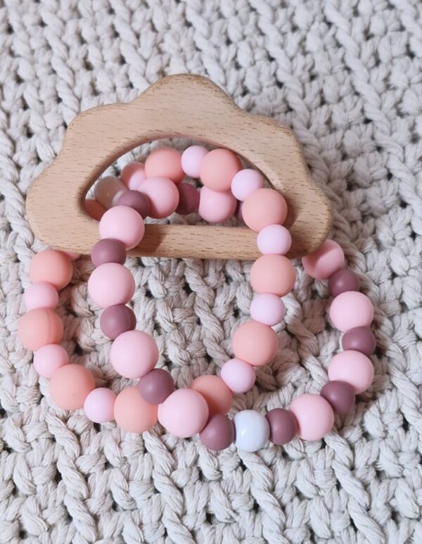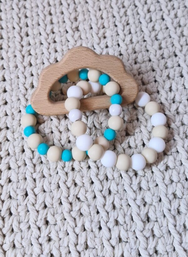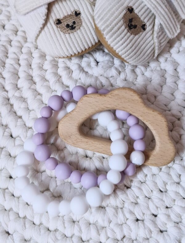 Ideal zum Zahnen: Die weichen Silikonperlen massieren sanft das Zahnfleisch, während der Holzring eine zusätzliche feste Beißfläche bietet. 😌