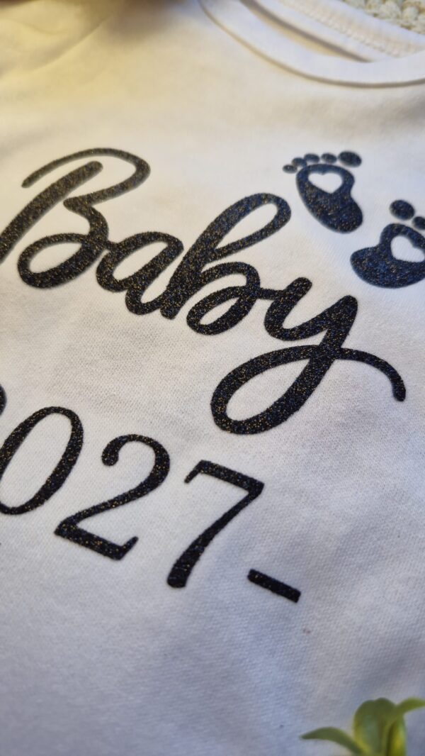 Glitzerndes Highlight: 😍 Der hochwertige Aufdruck „Baby 2027“ mit den kleinen Babyfüßchen funkelt wunderschön (wie du auf dem Foto sehen kannst) und macht den Body zu etwas ganz Besonderem.