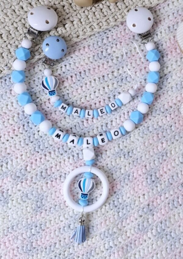 Dieses Duo aus Kinderwagenkette und personalisierter Schnullerkette ist das perfekte Ticket für süße Träume und aufregende Ausflüge!