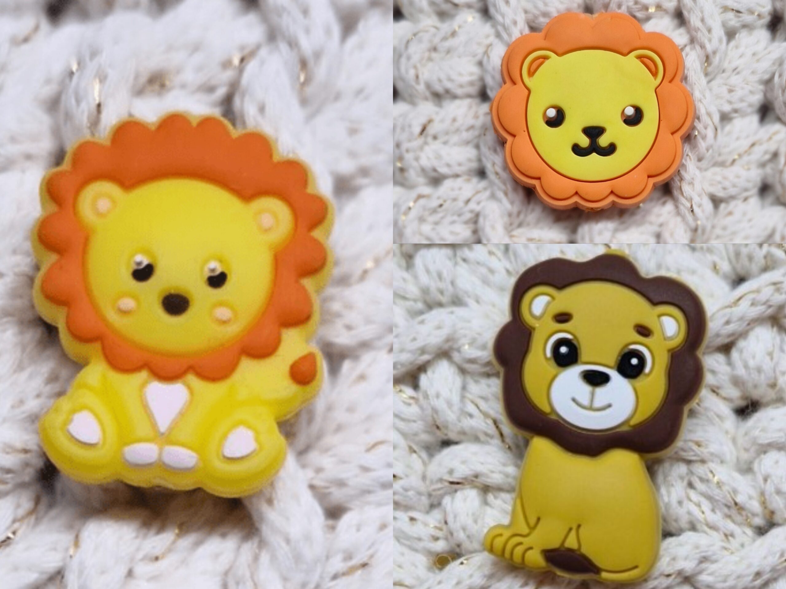Löwen-Highlight: 🦁 Die goldgelbe Löwen-Motivperle ist ein echter Blickfang! Mit seiner freundlichen Mähne und dem süßen Gesicht lädt er zum Tasten, Greifen und Kauen ein. 🐾✨
