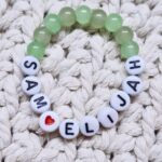 Diese supersüßen Armbänder für Kinder bestehen aus einem elastischen Schmuckband, Glasperlen und Buchstabenperlen aus Kunststoff.