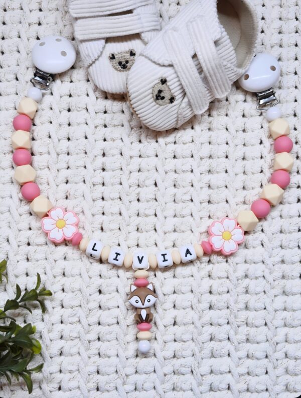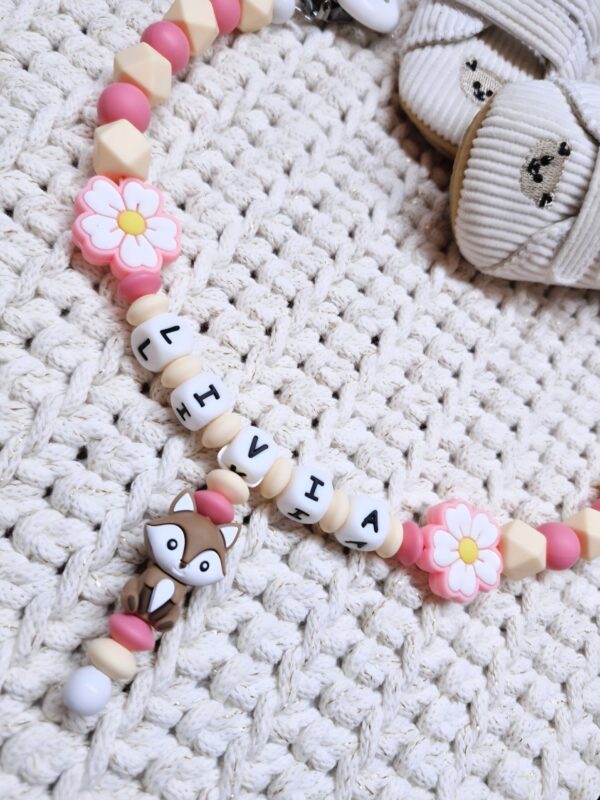 🦊 Meine personalisierte Kinderwagenkette „Kleiner Fuchs & Blumen“ 🌸✨