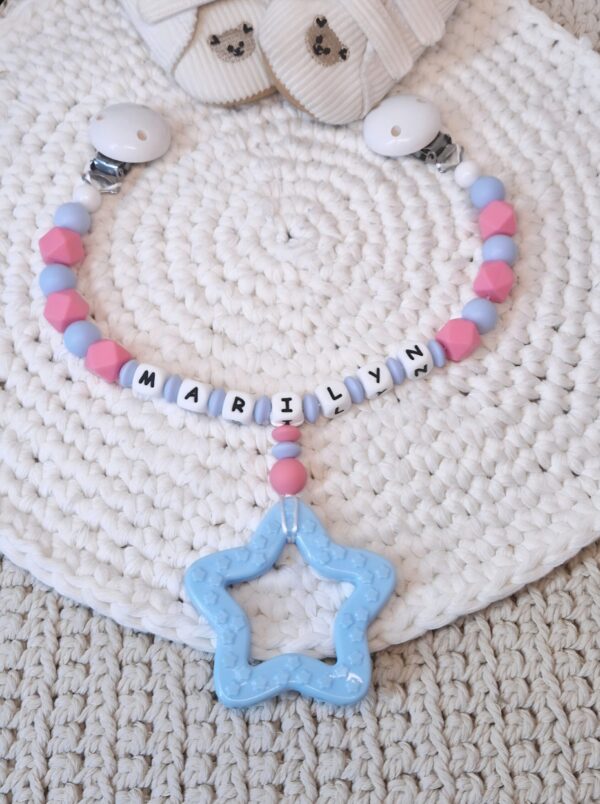 🌟💖 Sanfter Sternenzauber: Personalisierte Kinderwagenkette “Marilyn” in Pastellblau & Altrosa ✨☁️